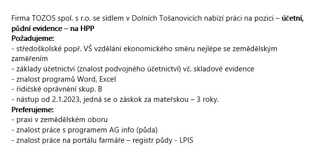 Úvod > Aktuality > Aktuálně z obce > Nabídka zaměstnání - fa TOZOS v Horních Tošanovicích