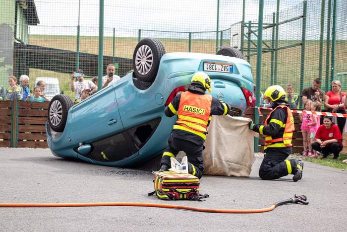 Dopolední program obohatila ukázka profesionální hasičské techniky a velmi poutavá demonstrace vyprošťování osoby z havarovaného automobilu, kterou připravili profesionální hasiči. Tato akce zaujala široké publikum a nabídla nejen podívanou, ale i cenné informace o práci záchranných složek.