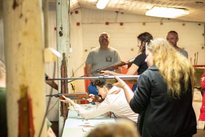 Tradiční součástí oslav bylo i střelecké klání na střelnici, kde si mohli návštěvníci vyzkoušet svou přesnost a zručnost.
